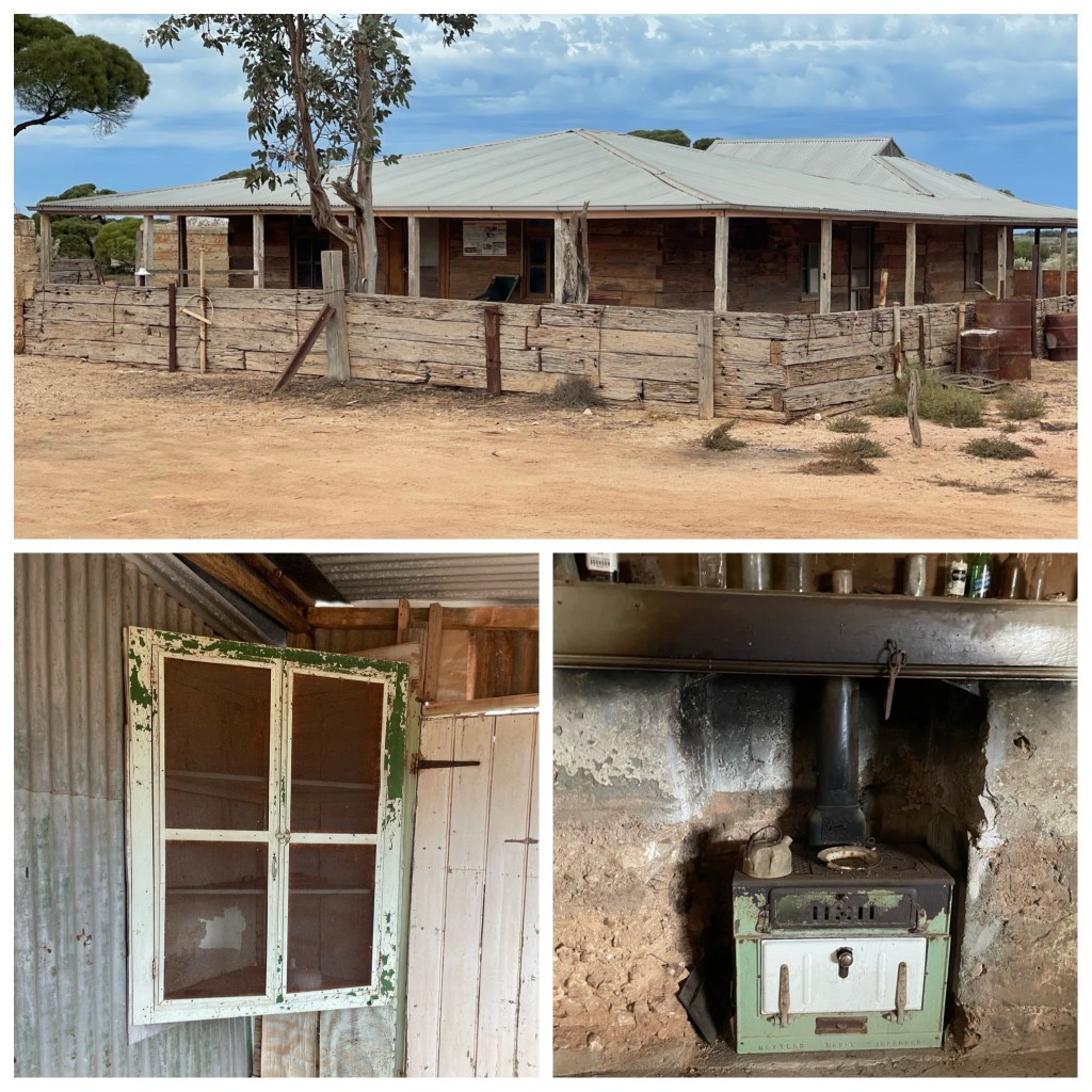 We are heading to the Old Eyre Highway. The original highway across the Nullarbor closed in 1976 when a new bitumen road was constructed 20-30klm south. Our first point of interest was the Wigunda Tank, where we turn west again onto the old Eyre Highway. This road hasn’t been graded since 1976. It’s still in pretty good condition with a limestone base and lots of bull dust in places. We pass several more tanks, before stopping to look at Yangoonabie Tank and sheep yards. This tank is still holding water and we can see how the water is filtered through the smaller tank before it flows into the large tank.