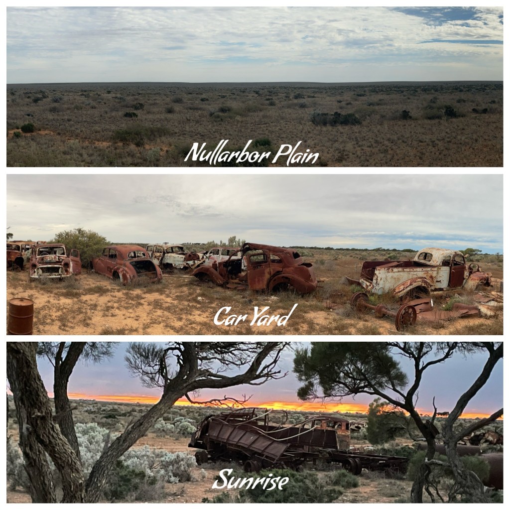 Back on the road and continuing along at 20-30 k an hour we head toward the old abandoned (1988) Koonalda Homestead, now deserted but open to visitors as a South Australia National Park. This is our camp spot for tonight and it looks like we will be the only ones here. Philip can’t wait to get out of the car and start exploring as there is a graveyard of old wrecked vehicles here. If only they could talk there would be some stories to tell. We also walked up to the blowhole, a small hole in the ground about 12” wide that the wind whistles up through. Obviously part of the huge cave system under the Nullarbor Plain.