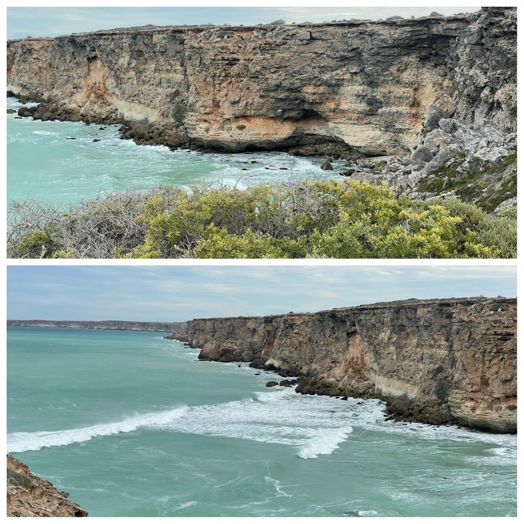 After a few days relaxing in Ceduna, eating oysters and King George Whiting, we were ready to hit the road again. Continuing our westward route we are on the road early, 7.45am, and head west towards Penong and beyond. We stopped for a break at the Head of the Bight and walked down to the cliffs. The last time we were here there was no visitors centre, board walks or lookouts, just the cliffs and rolling seas. Mind you that was about 27 years ago. How things change.