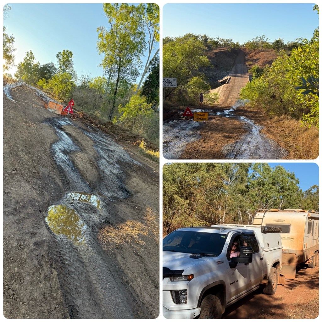 (P – We have about finished our full lap of National Highway One, over various trips. The missing link for a few years has been the Savannah Way (the original Savannah Way, not to be confused with the black top version further south). As the author stated some of it was rugged enough to shake the fillings out of your teeth! Whilst it might not have the status, be as trendy and have “naming rights” like Cape York and the Gibb River Road, I think it is just as beautiful, less commercialised, virtually no traffic ( like about 4 or 5 oncoming vehicles each day),has some fantastic natural wonders, saw more animals ( both native and introduced) and was fortunate to see a couple of cattle musters along the track! Around 1000klm of outback dirt roads have rolled under our tyres in the last 5 days, I doesn’t get much more Aussie than driving roads and tracks like these! The isolated “Hells Gates Road House” just near the NT \ Queensland Border we felt, is aptly named as we had just completed one “Hell of a “Road”).