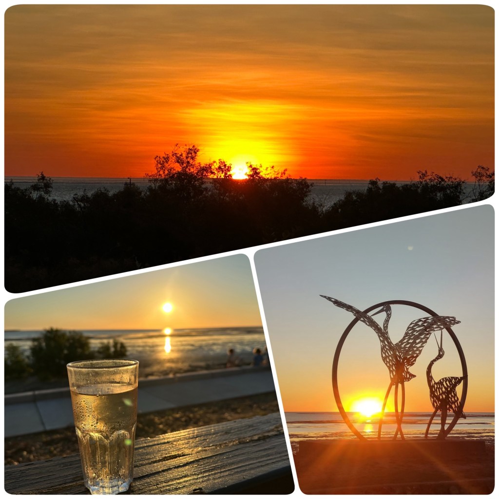Dinner at the pub tonight as watched the sunset. Calamari for entree to share and then delicious Barramundi and salad for mains. The sunset here never disappoints.