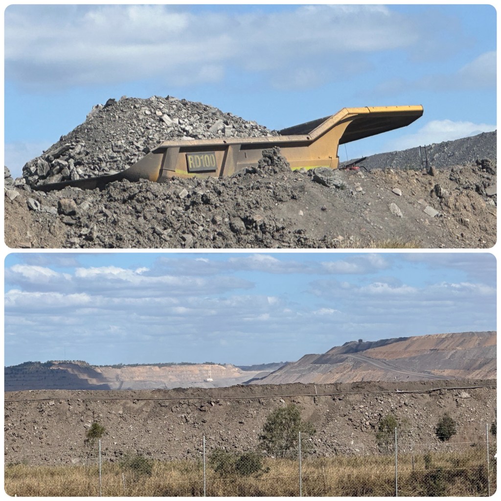 Train Loading Coal and 9m Wide ore truck being transported on HighwaySilo Art at Three Moon