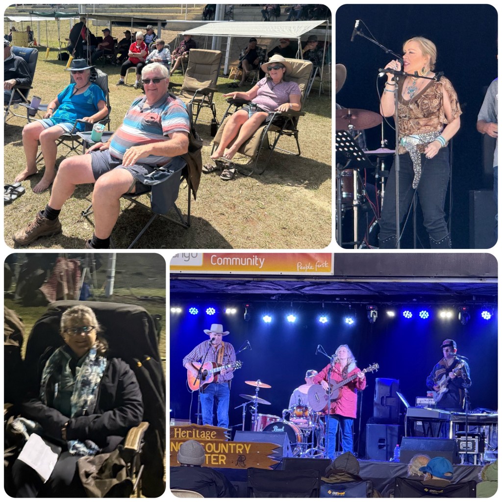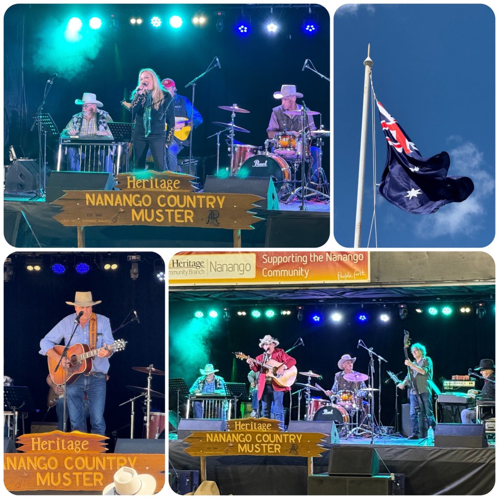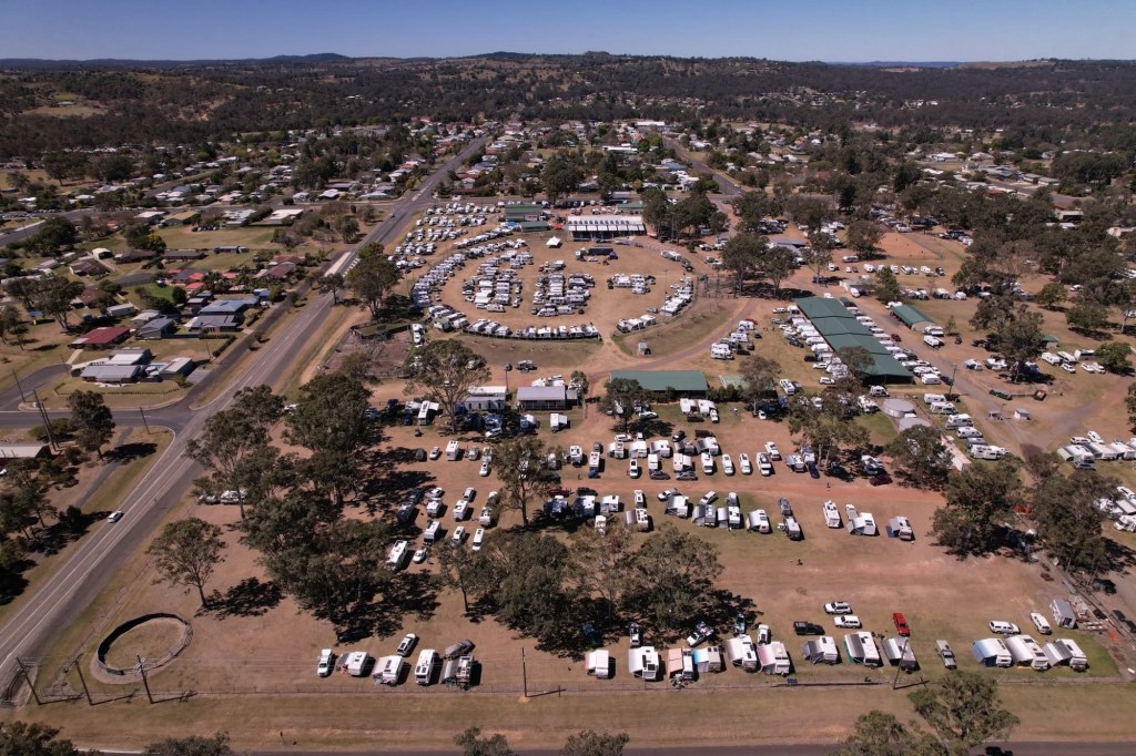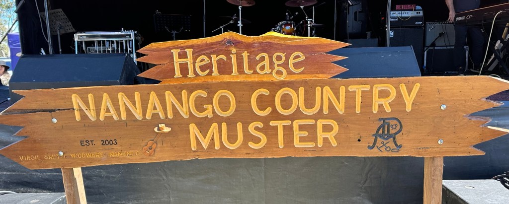 What a way to spend a few days, great music, beautiful days, clear, crisp evenings and a stage full of talented country artists. This is our second time attending the Nanango Heritage Country Music Muster and it didn’t disappoint. (P:- I thought the “Heritage” in the name was an indication of the age of all the “old” grey nomads that attend. Evidently not the event is sponsored by the local community Heritage Bank!! ). The Nanango Showground was packed with 614 caravans, motor homes and rooftop tents of all shapes and sizes. The stage was full of musicians and singers that kept the music flowing for 10-12 hours each day. (P:- Talk about country ( and the demographic) I couldn’t use my Credit or Debit card to buy food or coffee or Icecream! It was all Cash only, its along time since I have seen that!) The town centre was just a short ride away if we needed a break from the music and we were able to share the event with friends, Cameron and Margaret. A couple of lovely shared meals together and lots of time sitting chatting about the artists we liked or disliked (not many). (P:- And a few yarns and stories shared from the past). By the time the weekend was over our ears were ringing and songs were cycling through our minds continually. We have new artists that we enjoy and will follow and artists that we knew but now have a greater appreciation of their music.