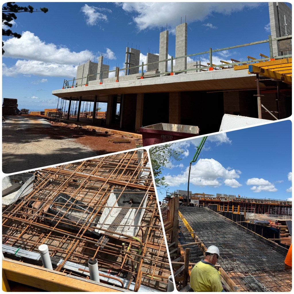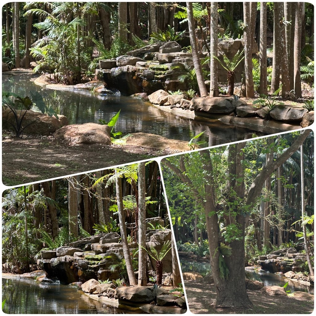 Tuesday we spent the day with Peter and Di again, taking a drive up to the Tambourine Mountains. This is a lovely area that we have never visited before but is now on our to-do list next time we are up this way. Lots of eateries, quaint shops and gardens etc to check out. Peter has bought us up here to have a look at a building project that is happening. A holiday home that has the most awesome views over the Gold Coast area. The home will be a mansion when it is finished (in about two years time). Two swimming pools, Butlers entry and storerooms, parking for multiple vehicles, massive windows and much more. Just the gardens will be spectacular. About 40 man ferns purchased from Scottsdale, Tasmania, and freighted up here all look to be very healthy with new growth. A man made lagoon, waterfall and deck are gorgeous and there will be a tennis court with its own pavilion and amenities in the grounds as well. All this is on a 50 acre property that has some of the only remaining native rainforest in the area, which is used in movies and tv advertising etc. Some of the movies filmed here are A Touch of a Paradise, Kokoda and Dora the Explorer. I would very much like to come back in a couple of years and see the finished project.