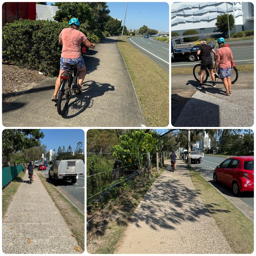 (P:-Alexandra Headland! The “Author” always complains about this scenic “knob” that separates Maroochydore and Mooloolaba, when we return to the van she is hobbling and struggles to climb the 3 steps into the Caravan! I suggest the name of a good knee surgeon, Who did wonders with my knees 11 years ago. I then did the sums and came up with a cheaper option than new Knees. The next morning after much “Facebook Market Place” research we are off to find a “bargain priced, as new, owned by a little old lady who couldn’t ride, E-Bike. Mission Accomplished!!)
