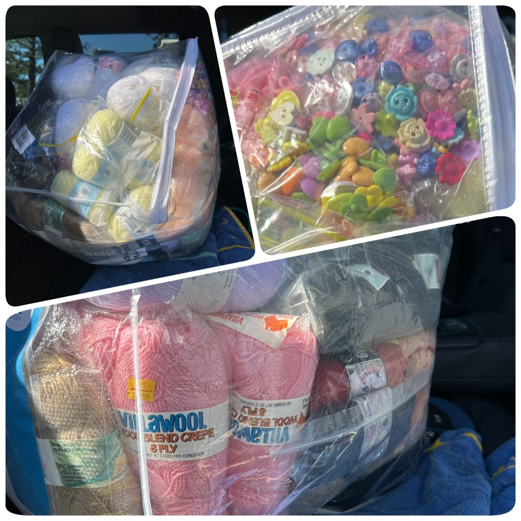 Sunday we spent the day with Philips cousin Peter and his wife Di. Had a great catch up and a lovely meal together. (P:- for years as we drive Judith knits, and knits and re knits children’s and babies clothing and gives to charity ( I guess it keeps her busy rather than being a co-driver instructor all the time). I don’t know how many garments have been knitted but it’s dozens and dozens. Cousin Di had been doing a bit of sorting out and had a 15-20kg bag of wool and a zillion buttons for Judith, she was wrapped! A very generous gift for Judith to knit up and donate to charity- I did try to help one day when Judith wasn’t looking – don’t think she was impressed with the un knitting she had to do).