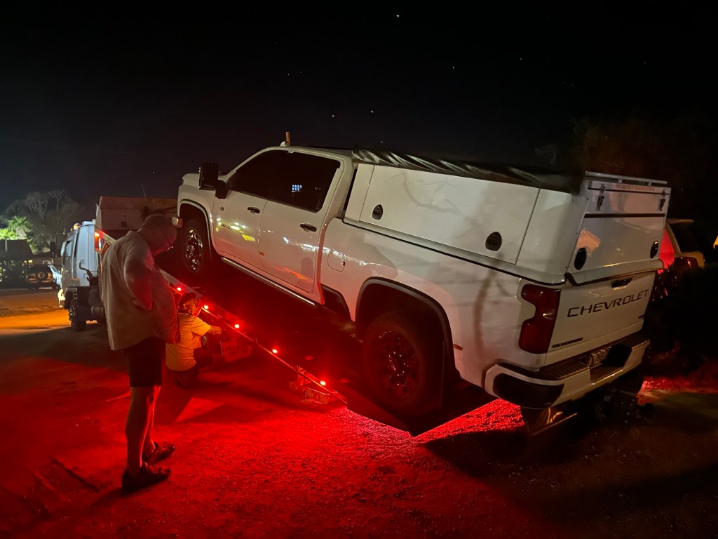 (P:- Yep it was a bit of a shock to jump in my beloved truck and see my dash light up like a Christmas tree. I have learned if there is an issue it’s time to work a plan. You can’t help but appreciate being in a country town! I had no sooner lifted the bonnet and there was a “G’Day Mate can I help you? I am John the local Plumber. After introducing myself to my new mate I had 2 main concerns – 1) my icecream was gunna melt (so Judith kindly offered to walk to the van with that) 2) it was dark and to get the Chev off the street. It just so happened my “Mate” John had a good “Mate” Steve who was the local Tilt truck owner! (Good to have mates I tell you!) Well Steve was there in 20 minutes and we soon had “Sick” Chev on the truck and delivered back to the caravan. I was imagining all sorts of logistical challenges getting Us, our Chev and Van back to Tassie but thought- I am Hungry, let’s worry about that tomorrow! As the author said above it didn’t take long to find the issue and fix! A 50 cent nut had vibrated loose on a main power line feeding the Chevs computers- All fixed and back to normal. I also found out my “Mate” Steve likes Cash and gave me a great deal on the recovery proving “Cash is still King” ).