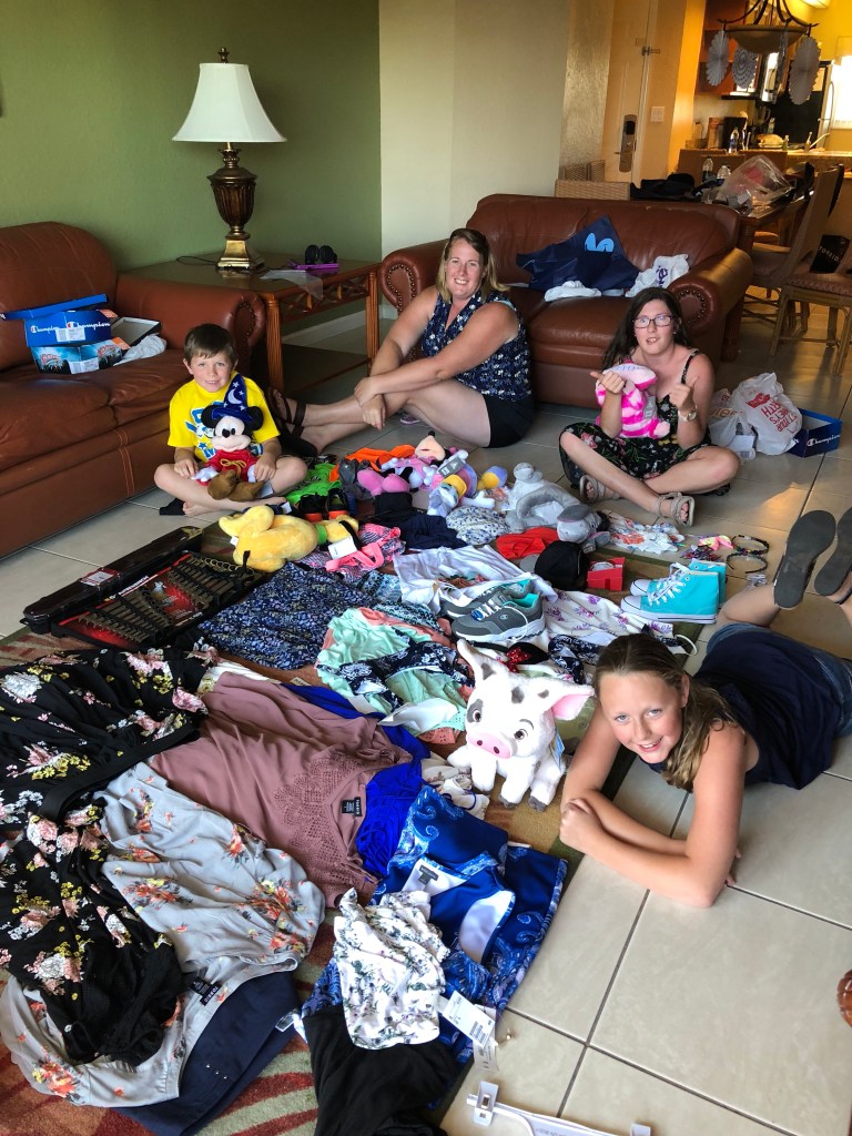 After breakfast and a swim we prepared for a day of shopping today. Everyone has a list so it’s off to Florida mall. We split up so that we could each shop for different things. The time flew and soon it was lunch time and our first meet up. The kids were excited about things they had seen and purchased, particularly Claire whose first stop was the Disney Shop where she purchased Pua the pig from the movie Moana. We had tried to purchase this at Magic Kingdom but all were sold out, so there was much excitement when we found one today. Lilly found the Cheshire Cat, from Alice In Wonderland and Hugh got Wizard Mickey from Fantasia. After lunch it was more shopping, Ma and Lilly, Claire and Mum, Dad and Hugh and pa with all of us at some stage. The bags piled up as the purchases grew and finally we were all ready to go. Some great purchases were made and the American economy survives again.