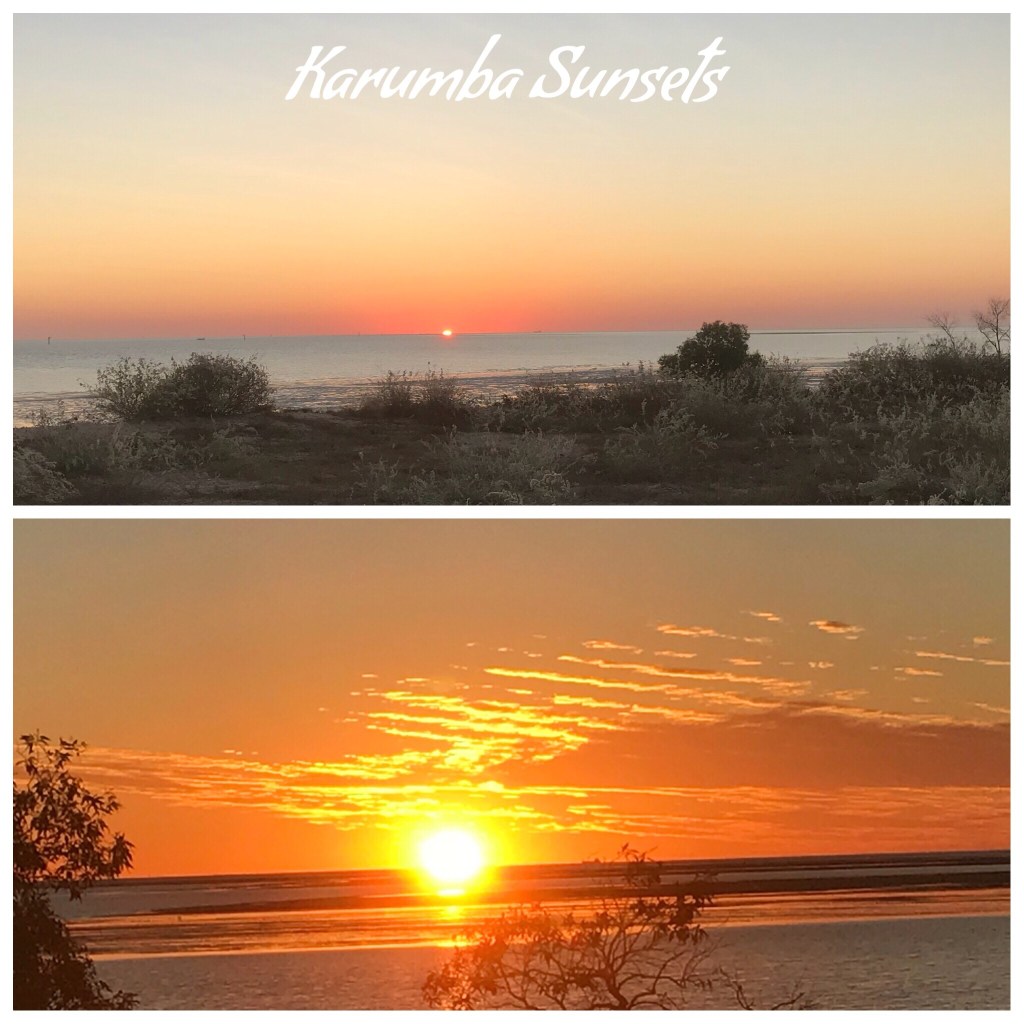 This morning we completed the station track as we come out onto the Burke Development road about 30 k south of the Burke and Wills Roadhouse. Back onto paved road. Makes for a much smoother ride although not quite as interesting as the station roads. We stopped at the Roadhouse for a toilet stop and to stretch the legs and check the van before continuing up to Normanton where we refuelled before driving the last 78 kilometres into Karumba. We arrived at Karumba just after 1pm, found our site, set up the van and had some lunch before we finished setting up the awning chairs and table etc. Now for a relaxing afternoon enjoying the 30 degrees C and light breeze. During the afternoon Philip helped the guy behind us back his van into their site. His wife wasn’t much help. We have a lovely site here (site 125) with morning sun and shady through the afternoon. Tonight the park is hosting their regular roast night with Roast Pork on offer tonight, so we have booked in. Happy hour starts at 5.30 and dinner around 7pm with live music. BYO plates and cutlery and drinks. We wandered down around 6 ish and found our seats. Durning the course of the evening we met some great people who were seated around us. Roz and Terry arrived today as well and they have just come through the road we are taking to Cairns so we were able to get some info from them. The chap on the other side of Philip had been on a fishing trip, something Philip had planned to do, but they were out all day and didn’t catch anything. The roast pork meal was lovely and we had heaps of food. Pork, crackle, baked potatoes, baked pumpkin, beans, gravy and bread and butter. There was certainly plenty to go round. The music left a bit to be desired (P- I have heard way better music from the wind howling down a rusty drain pipe!!!) but all in all it was a pleasant evening.