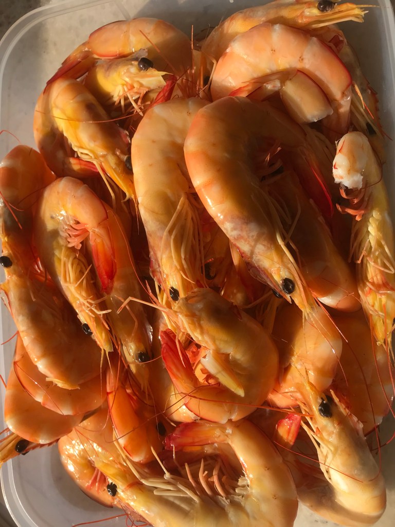 Later we had some beautiful prawns for an entree. Then decided to go for a walk around the park before we cooked dinner. The quick walk turned into an hour and a half as we met an old client of ours from Tassie and stopped to talk to him for a while, then talked to some guys cleaning fish and then met Roz and Terry and sat at their camper and talked to them for an hour. By the time we got back neither of us felt like much dinner so made a light fish mornay and toast.