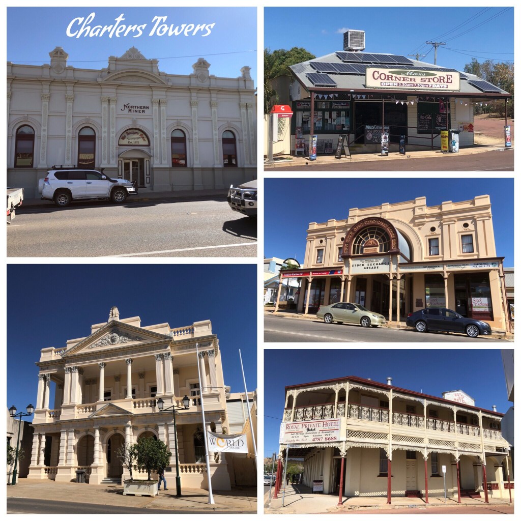 Today has been a long driving day, about 500 k. But we are now on the coast at a lovely park at Hideaway Bay, just north of Airlie Beach. We stopped for a while in Charters Towers for a wander around. There are some magnificent old buildings there as this was a very rich gold mining area. The town boasted one of the few Stock Exchanges outside a Capital City and at one stage there were 92 Pubs in town. Many of the old buildings remain and this certainly adds character to the lovely Main Street. We need some more time to fully explore this rural centre.
