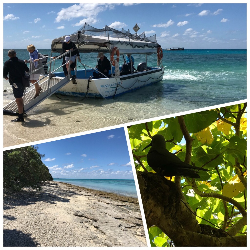 Once we made our way inside the reef the water levelled out and the boat moored and a wonderful morning tea was served before we off loaded into a glass bottom boat for a trip around some of the bommies and the reef walls that surround the island. Although the coral is not very colourful it is very healthy with many different types of corals about. We also saw numerous green turtles, some resting on the coral some just lazily floating around and some poking their heads above the water. After spending 90 minutes looking at the reef we landed on the island ready for a walk with our island guide.