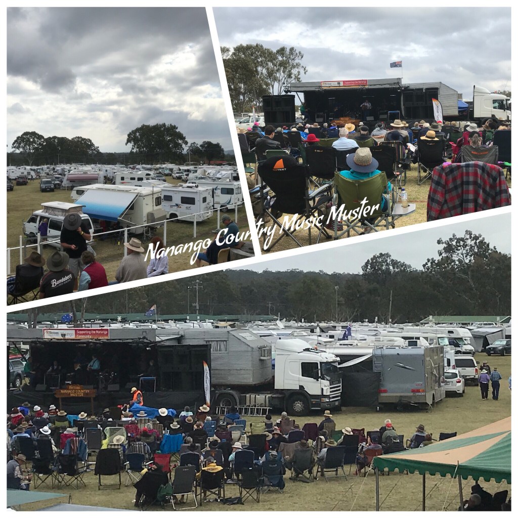 We are now at Broadwater Caravan Park in Southport on the Gold Coast after spending a wonderful weekend at Nanango Country Music Muster. Hours and hours of great music and Bush poetry. We set our chairs up at the main stage on Thursday evening and they remained in place until we left on Sunday morning. That way we could just move between performers and the van when we wanted to hear a particular musician. We ended up spending most of our time at the stage area as all the performers were very talented. They were quite varied in their styles and techniques from classic country to modern country, yodelling (not into this), to gospel. (P-I really enjoy the artists that specialise in Australian Bush Ballads, putting true and not quite Aussie stories to music).They had two bands to back the singers that swapped and changed as the music changed. An awesome pianist, energetic double bass player, steel guitars, fiddle player and multiple guitarists. Most just picked up their instruments and joined in playing without music. All very talented musicians, I enjoyed watching them as much as I enjoyed the singers.