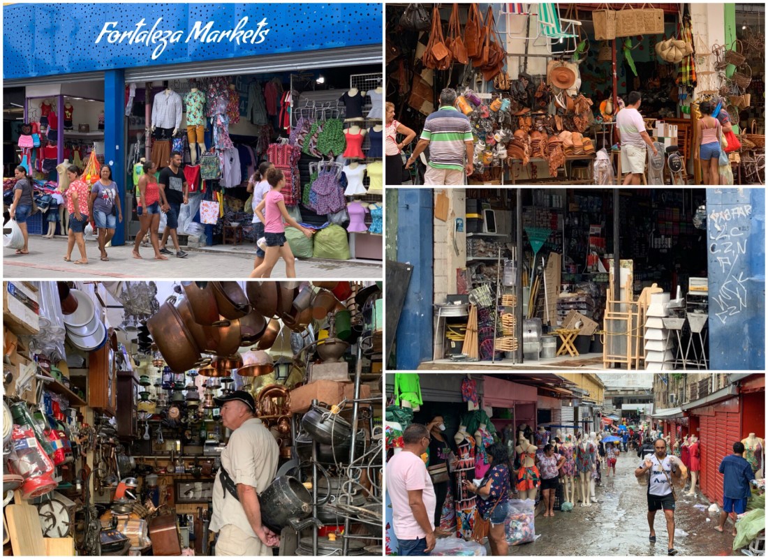 As we open the curtains this morning all we can see is fog and rain. We are docking at Fortaleza after 3 days at sea and we are ready to get out and stretch our legs. No tours booked today but a shuttle into the city and then off on foot to explore. Fortaleza is the capital of this northeastern area of Brazil and is known for its beaches, red cliffs, dunes and lagoons, none of which are very appealing as we run off the ship to the shelter of the terminal and onto the shuttle. Fortunately by the time we reach the city about 30 minutes later the rain has eased and the sun is starting to poke through. Now if we were like the other tourists off the ship we would get off the bus and explore the market on our doorstep, maybe walk down the road to the cathedral and then head back to the ship. Well I’m sorry to say that is not our plan. We head straight through the market and towards the cathedral but then we turn away and head behind the cathedral area to a more local market place. I have never seen so many clothes packed into a building as there was here. Small booths from a metre wide to several metres wide, most just a couple of metres deep with clothes stacked in piles and others displayed on hangers or models. Most are one size fits all, stretch fabric, man made fibres and a riot of colour. I found several shirts that fitted and spent a whole $12 for four tops. (P:- and again all I got was to carry the bags!)