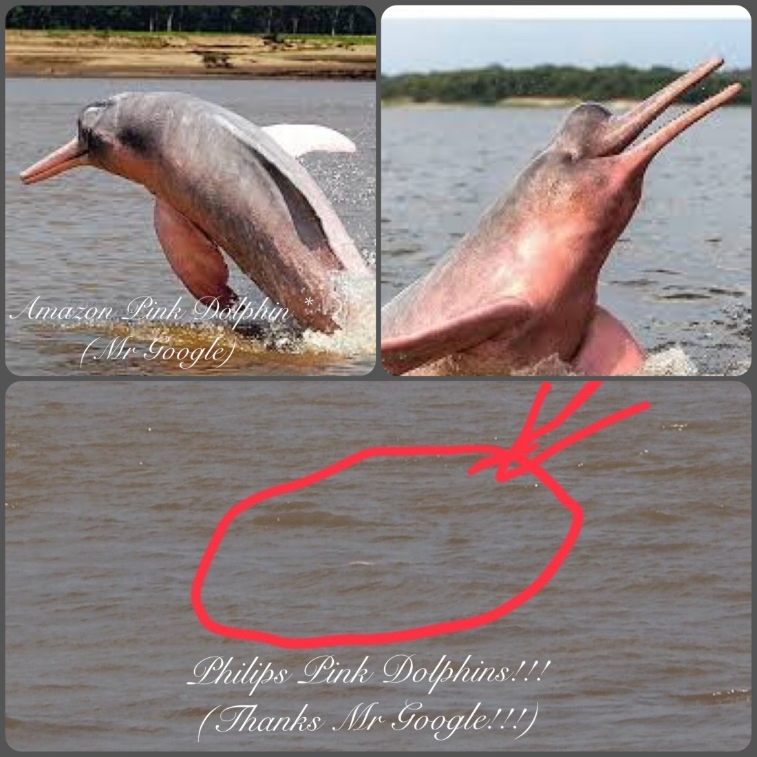 While waiting we talk about the things we have seen and what we would like to have seen. Philip has missed seeing the big tarantulas, (not high on my bucket list) and an anaconda, I would love to have seen the Amazon Pink Dolphins, we saw glimpses of grey dolphins at the Eco Lodge but the pink ones were elusive. As we were relaxing I glanced out to the water, watching some birds and the ferries coming and going and to my great delight saw a dolphin just break the water, then another and another. And they were coming out of the water enough to see they were PINK. To say I was a little excited is an understatement. Several of them played around for a while before disappearing but several times during the course of our lunch they reappeared. What a treat we had. Another amazon bucket list item ticked off. Philip even snapped a picture of one, but thanks to MrGoogle we found a better one. A great way to finish our time in Parintins. (P:- J forgot to mention our “lite” Brazilian BBQ was awesome. I hope she appreciates that without my local food “hunt” no pink dolphins would have been seen!)