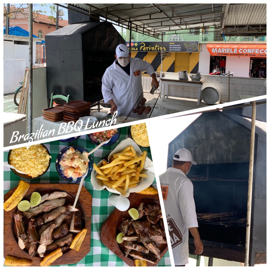 After several hours wandering the town we head back towards the pier and find a Brazilian BBQ restaurant. Of course Philip can’t go past it without going in for a closer look at the menu which luckily also has some English on it. The big open BBQ area looks interesting and smells great as it cooks, lamb, pork, beef and some fish. We take a seat by the railing overlooking the waterfront and pier and peruse the menu. So many decisions but we finally decide on some mutton and pork and sit back to await our meal.