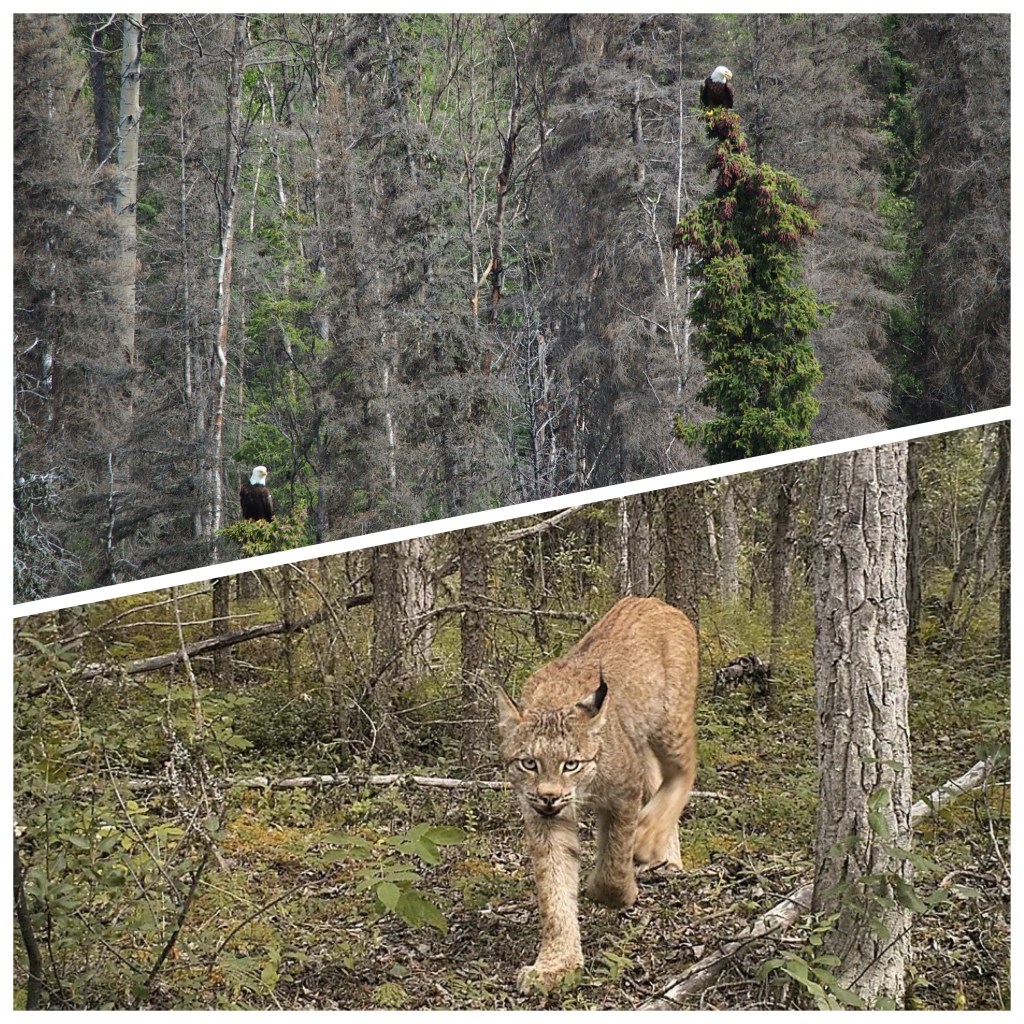 Leaving Hope we rejoin the Highway for a few miles before turning onto Kenai Lake Road and then Skilak Lake Scenic Route. We have heard that this road is good wildlife spotting area. Our first stop is just a mile down the road where we can walk down to the Kenai River and Canyon Overlook. Spotted two bald eagles perched in the trees across the slough from us while salmon jumped almost continually.