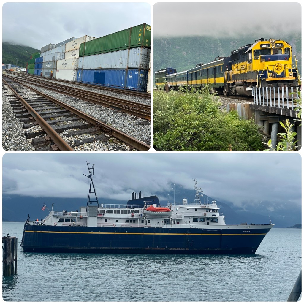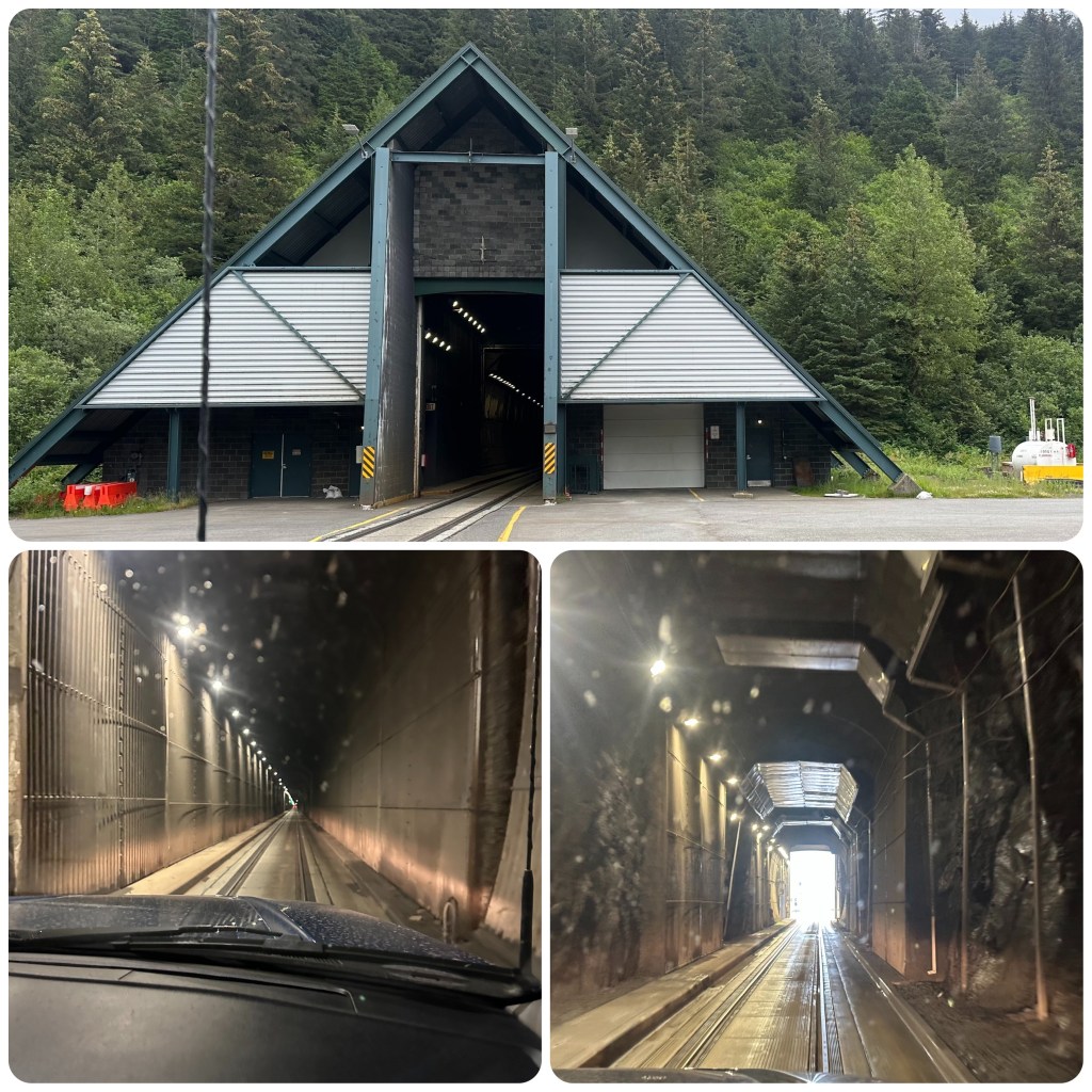 This morning we drive from Tern Lake into Whittier where we are booked to catch the Alaska Marine Highway Ferry to Valdez. We are currently sitting on the ferry as I write this enjoying some spectacular views as we cruise past mountains, glaciers and many, many islands. But back to Whittier. This is an amazing little town. Access to Whittier is via a train/vehicle tunnel 2.5 mile long. It is the longest tunnel in North America and the first designed for -40 degrees and 150 mph winds. The tunnel was originally built for the train and it wasn’t until 2000 that the road was constructed so that both trains and vehicles could use it. The tunnel is only a train width wide. Trains have priority and traffic lights control this one way at a time tunnel.