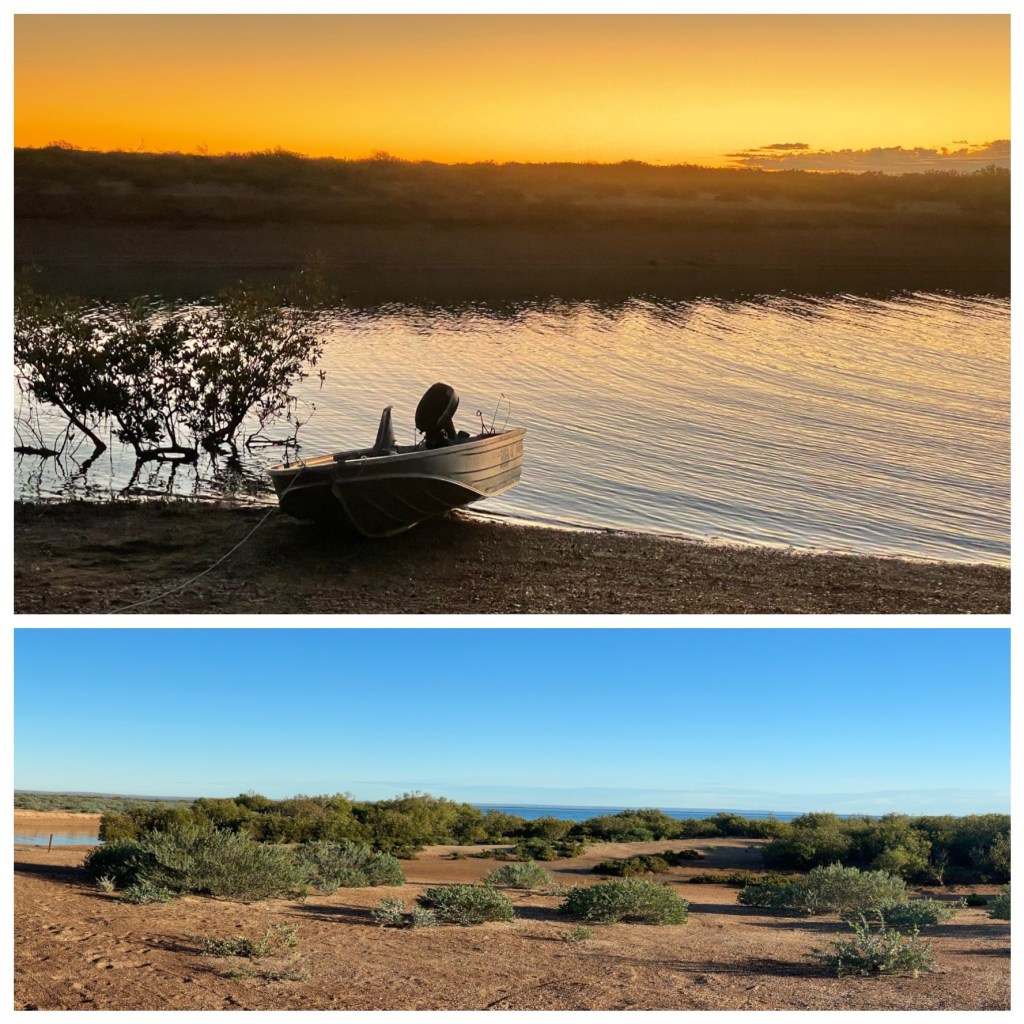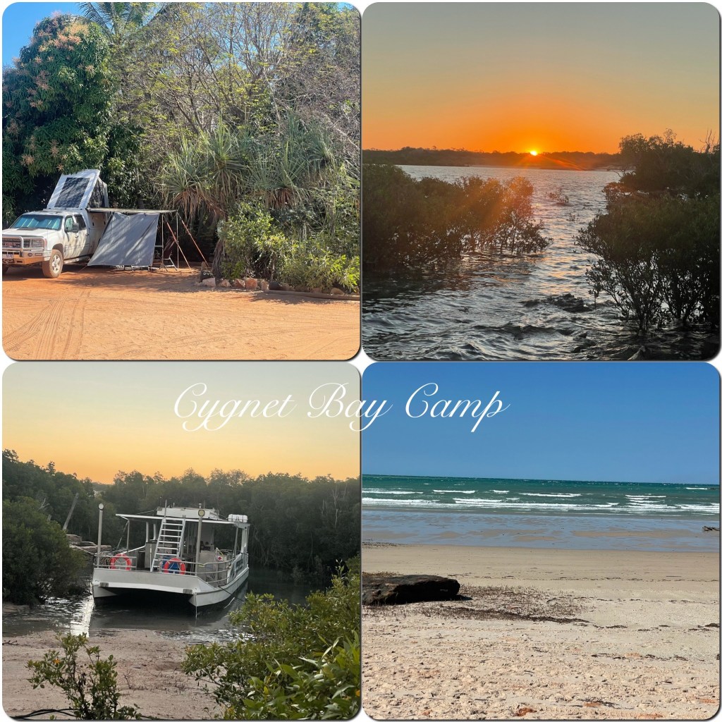 We are leaving our van at the Caravan park and heading up to Cape Leveque with our rooftop Penthouse for a few nights. We have heard so many rumours about places being closed up here so not sure what we will find but we are here so we are not going to miss the opportunity to drive up and tick a few spots off our bucket list. Our first two nights are at Cygnet Bay Bush Camp, almost at the tip of the Cape, 200k north of Broome, on a mostly sealed road. The trip is nothing to write home about, being scrubby to the edge of the road, flood plains and flat most of the way. It’s not until you take the side roads, that you start to see the gorgeous coastline. Many of the aboriginal communities are closed but the camping areas are open and if you don’t have a camping spot booked you can just get a day pass to have a look around. We arrived at Cygnet Bay Pearl Farm early afternoon and checked in. Drove out to the campground and set up. We have a beautiful little spot, shaded by big trees and sheltered from the hot sun. After lunch we walked down to the beach. This is not the most spectacular beach area but it’s a bush camp not a beach camp. We walked around the bay keeping a check out for crocodiles even though they said they hadn’t seen any for a few years. Then back to relax at our camp. Later in the afternoon we walked back to the beach to watch the sun set over the mangroves.