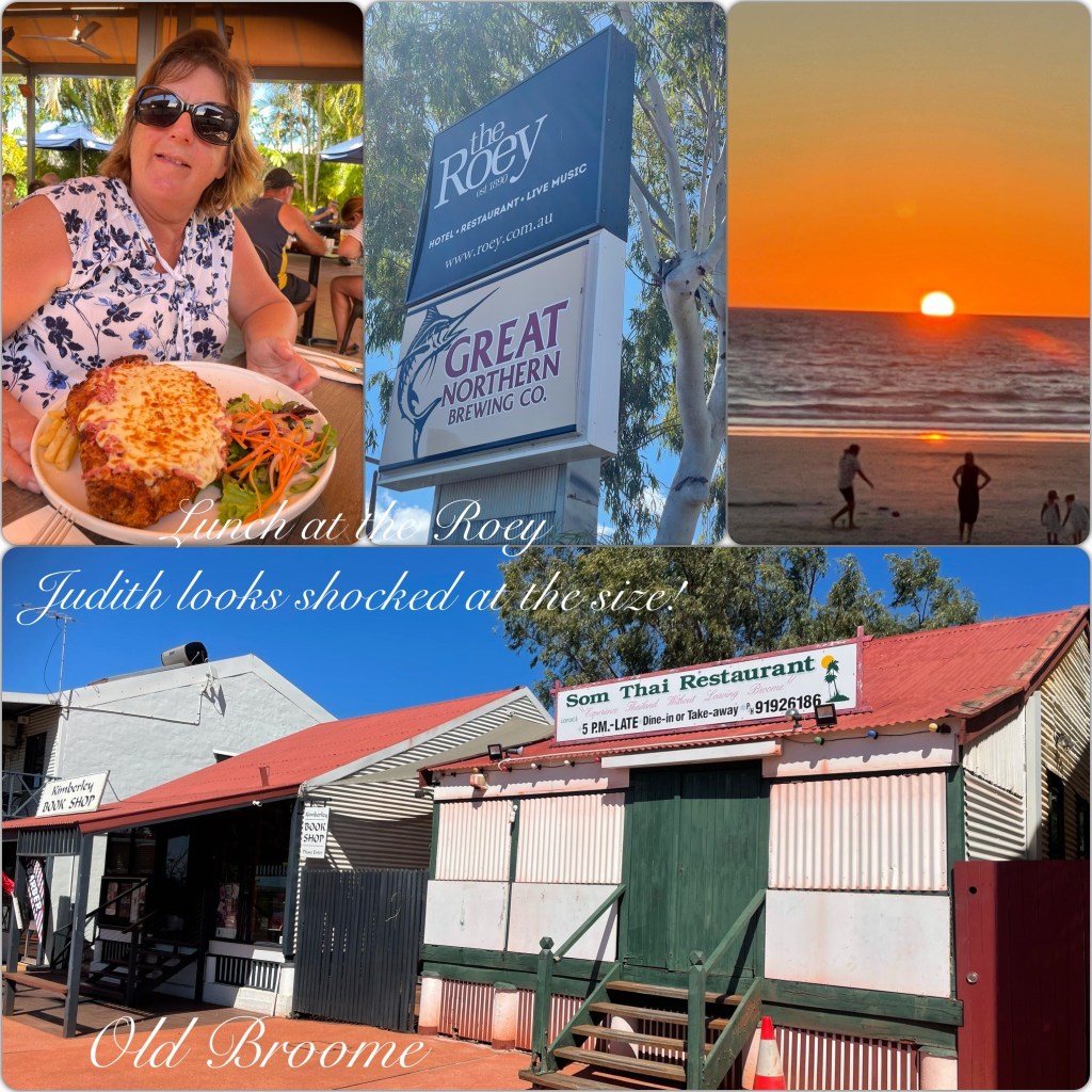 From Cape Keraudren we continued north to have had a couple of days stopover in Broome, a night at Cable beach and then out to the Broome Gateway Caravan Park. Much prefer this park where we have room to breathe unlike being crammed into Cable Beach. We did the obligatory Cable Beach Sunset but have seen much better sunsets out in the bush. We had a wander through the Courthouse Market and then walked down to the “Roey” Pub for lunch in the open air courtyard. A lovely meal in a nice setting.