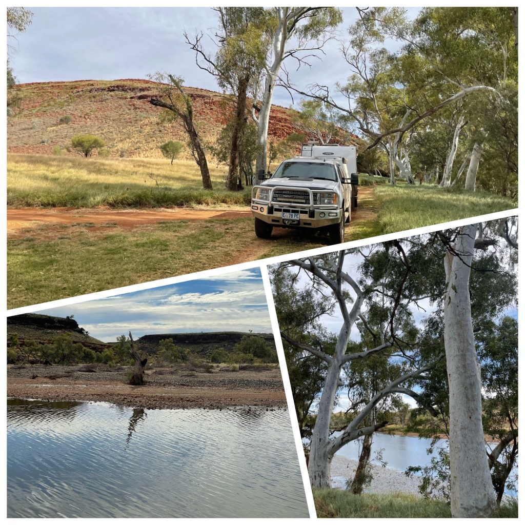 I politely mention this to Philip and suggest he made the wrong turn. He replies by saying “didn’t you listen to the weather report at 5am”, no I’m still asleep then. Wet wet wet. Rain storms just where we had planned to go and on these dirt roads water and red mud don’t add up to an easy drive. (We later heard that the area had up to 40mm-60mm rain and roads will be impassable). So we are heading north to Port Hedland and we have got 5 nights there. We have had no trouble getting accommodation in parks although other travellers are saying that everything is booked out. So we have 350 k to travel today. (P) We have a shovel and winch but as far as I am concerned they are for “looks” not to use unless desperate! Given our back road travel preferences I would prefer to spontaneously plan than be locked into pre planned / pre paid itineraries that force one into making bad decisions!)