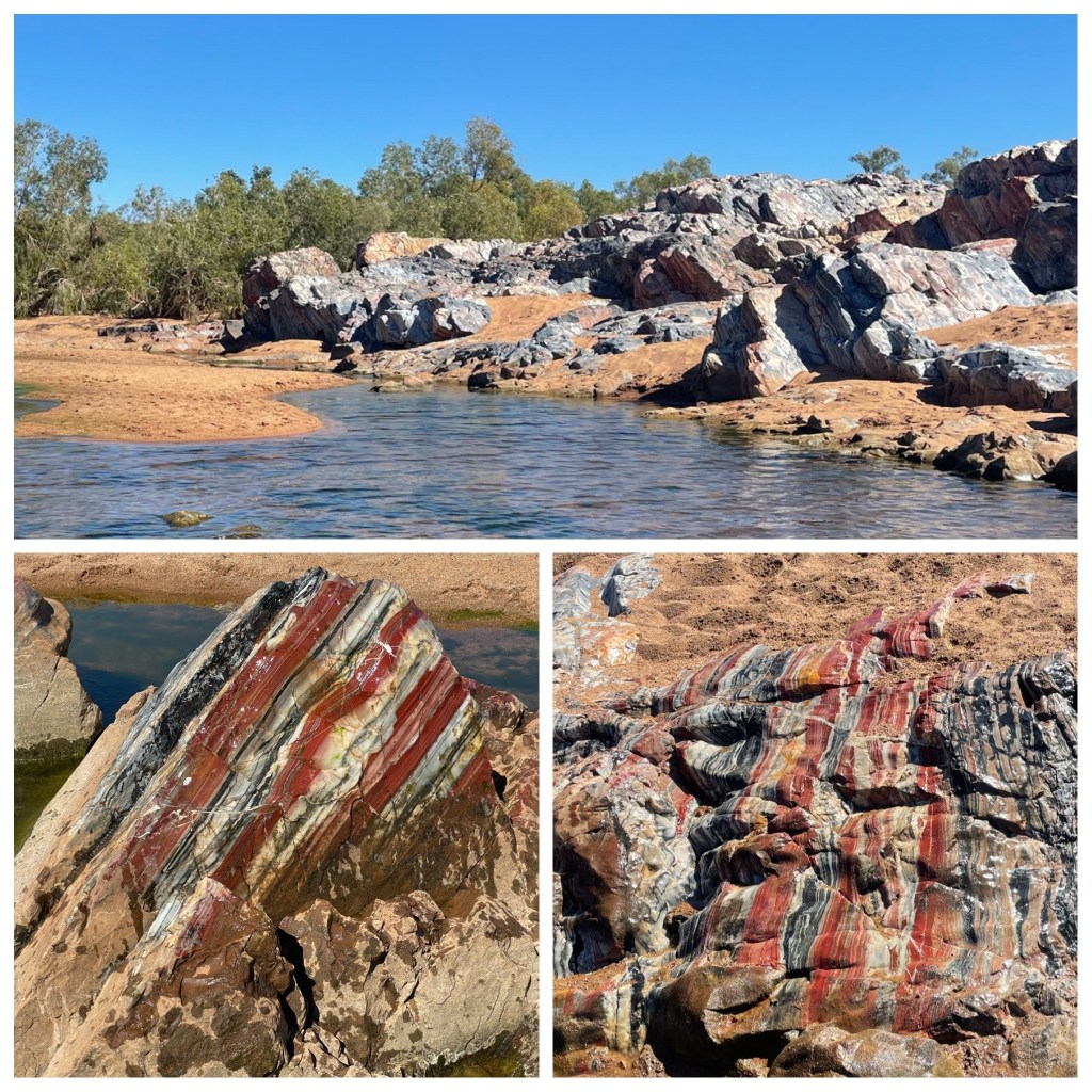 Our next tour, the following day, was a Twighlight Industry Tour, departing from the visitors centre we drove out past the Rio Tinto solar Salt Farm which covers 9000 hectares and produces 3.2 million tonnes of industrial grade salt per year. The salt stacks are clearly visible from all over town. Our Owner/Driver guide was a wealth of information, he was constantly quoting figures and statistics as he drove us around. Past the Lithium Ore (Spodumene), copper ore, fuel storage farms, and the massive Iron Ore storage areas belonging to BHP, Fortescue Metals, Hancock Prospecting and Roy Hill operation. The enormity of these operations simply can’t be described.