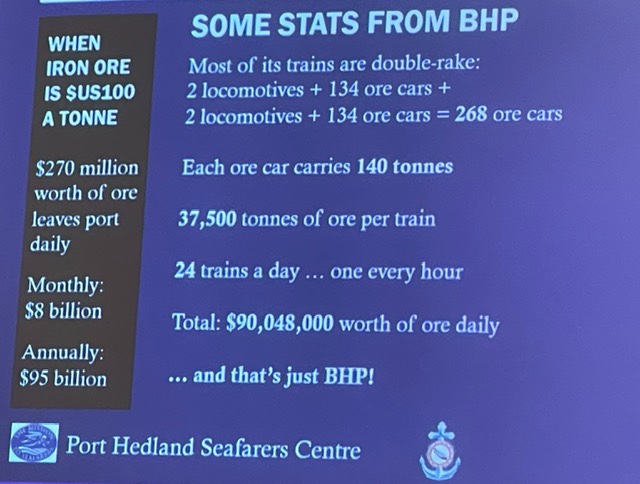 580+ kilometres of conveyor belting delivering ore from trains to sorting to stockpiles to ships