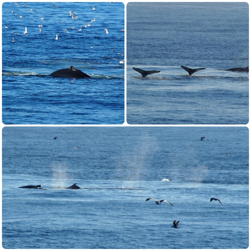 Once we leave Vardo we head out into open sea which is lovely and calm and shortly after whales are spotted. Orcas and Humpbacks and they are everywhere you look. Spouts are seen all around us in the distance and many breaking the surface as we pass them. Tails and fins are spotted and make the afternoon pass quickly. Numerous bird species are also spotted.