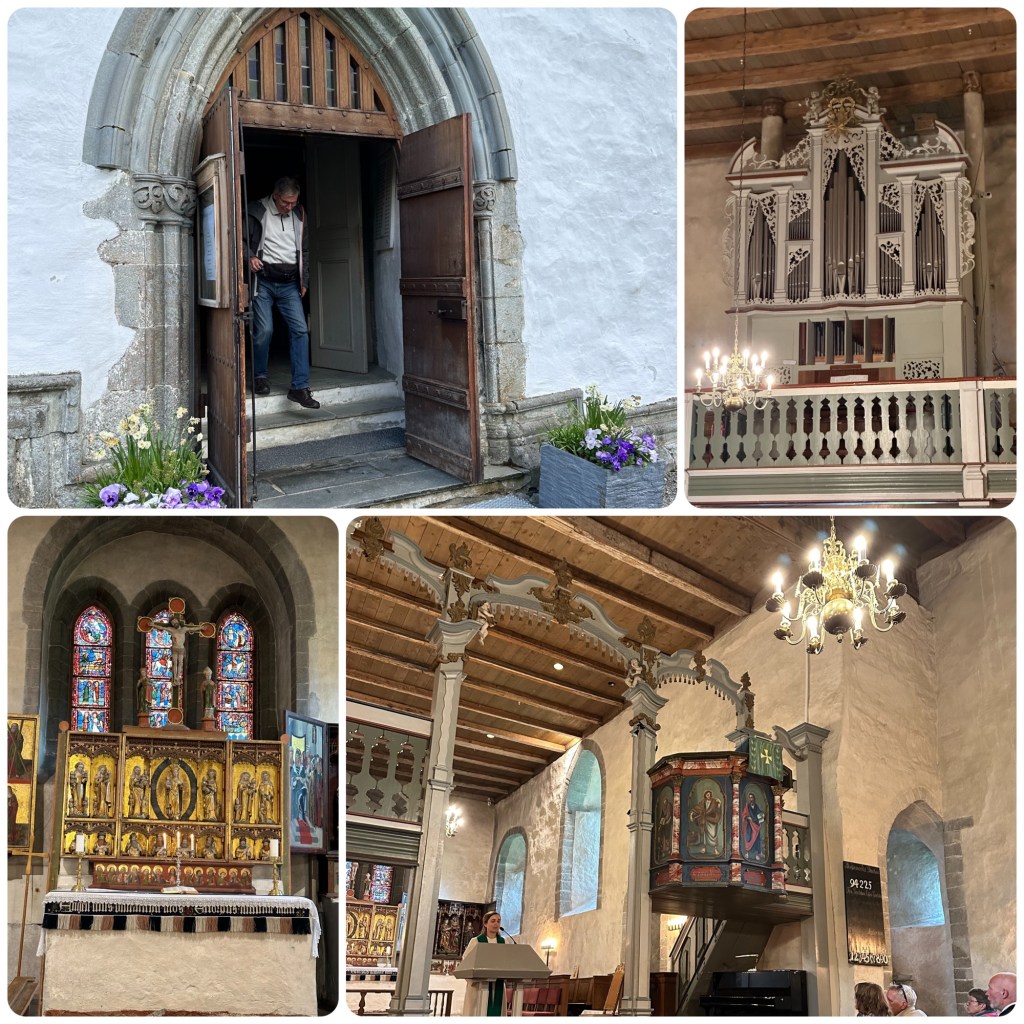 Taste of Vesteralen Tour took us on a tour from Harstad to Shortland in the Vesteralen Islands. A quick tour around Harstad before we ride out to the northernmost, Architecturally impressive, Medieval Church and Viking farm. We experienced a short church service and listen to the pipe organ then look through the museum before moving to the Viking farm where we learn about life in the Viking era. Several examples of weaving looms are on show which are quite interesting. She talked about “the sound of weaving”, this referred to the noise the rocks that were used as weights made as the threads were moved forward and backward.