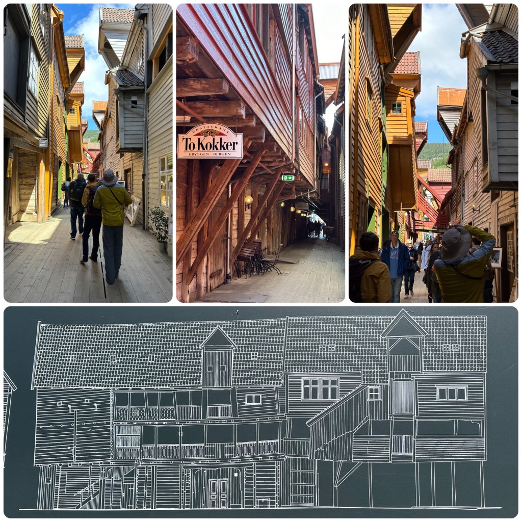 Bryggen is the historic harbour district of Bergen. It’s one of North Europes oldest port cities. It was established as a centre for trade by the 12th Century and is now a UNESCO world heritage site. For centuries it was the privilege trading place where dried cod, cod liver oil, hides, furs, butter and tallow from the North were exchanged against flour, grain, salt, beer, hemp and fabrics.