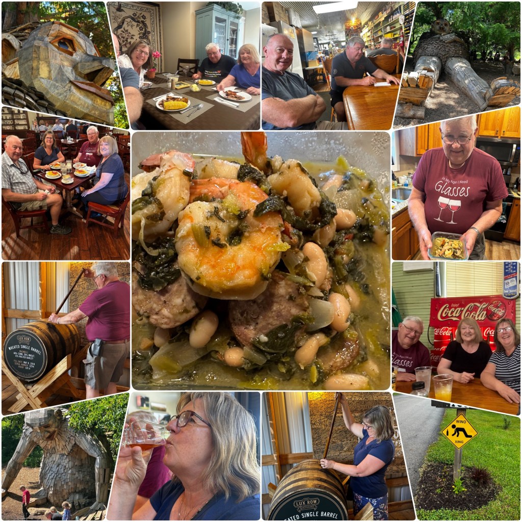 (P:- Tony, like me enjoys food and cooking. We also enjoy a good joke and laugh. Early in the week Tony mentioned he would make us a meal of “Swamp Soup”. (The look on Judith’s face,at the thought of it was almost like her “Bourbon face”). As the week progressed it was mentioned several times but it didn’t appear so we considered it a Tony Joke. Last evening it appeared, “robust” and very much looking like Tony dredged the Chitlans from the bottom of the local beaver dam! When tasted, the rich Swamp brown colour was overtaken by an outstanding flavour! Full of beans, onion, veggies sausage and shrimp and “Colonel Tony’s 11 herbs and spices”. I have the recipe and can’t wait to serve The Swampy mess to our next dinner guests).