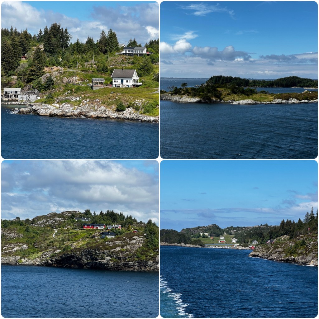 (P:-Stepping back a few weeks, when we was on the Amtrack train across North America we dined with a couple from Washington D.C. He was telling us that the granite belt we were seeing in Glacier National Park extended up and through Scandinavia, this ended up being interesting information as we sail and drive down through the granite boulders and Islands of Norway).