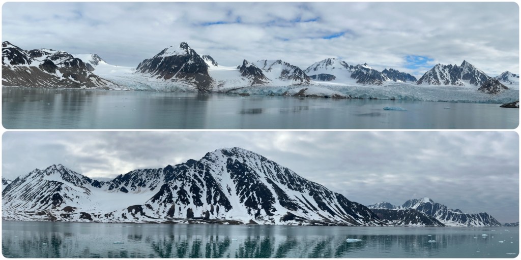 First Stop is Granesodden where we have a 360 degree view of mountains, glacier, small ice bergs and smooth waters. Majestic.