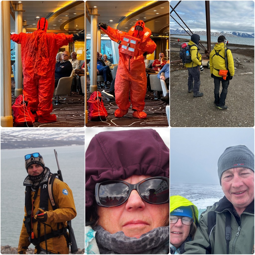 (P:- We were advised by the Captain and Expedition director that we would be kept busy and it was important to “Sleep Quickly” to fit everything planned in. Also had a safety drill and shown the survival suits. I think the survival suit may just prolong the agony of -1 degree C water)!