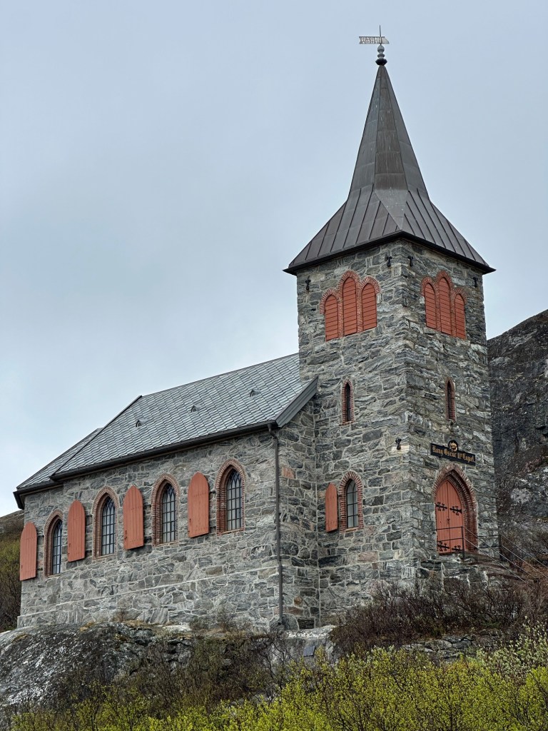 After driving back to Kirkenes to grab some lunch and book a table for dinner tonight we drive out the road northeast to Grense Jakobselv a small town with a gorgeous church and lovely beach. The church King Oscar 11 Chapel is about 500 metres from the Russian border, was built in 1869, and seats 72 people.