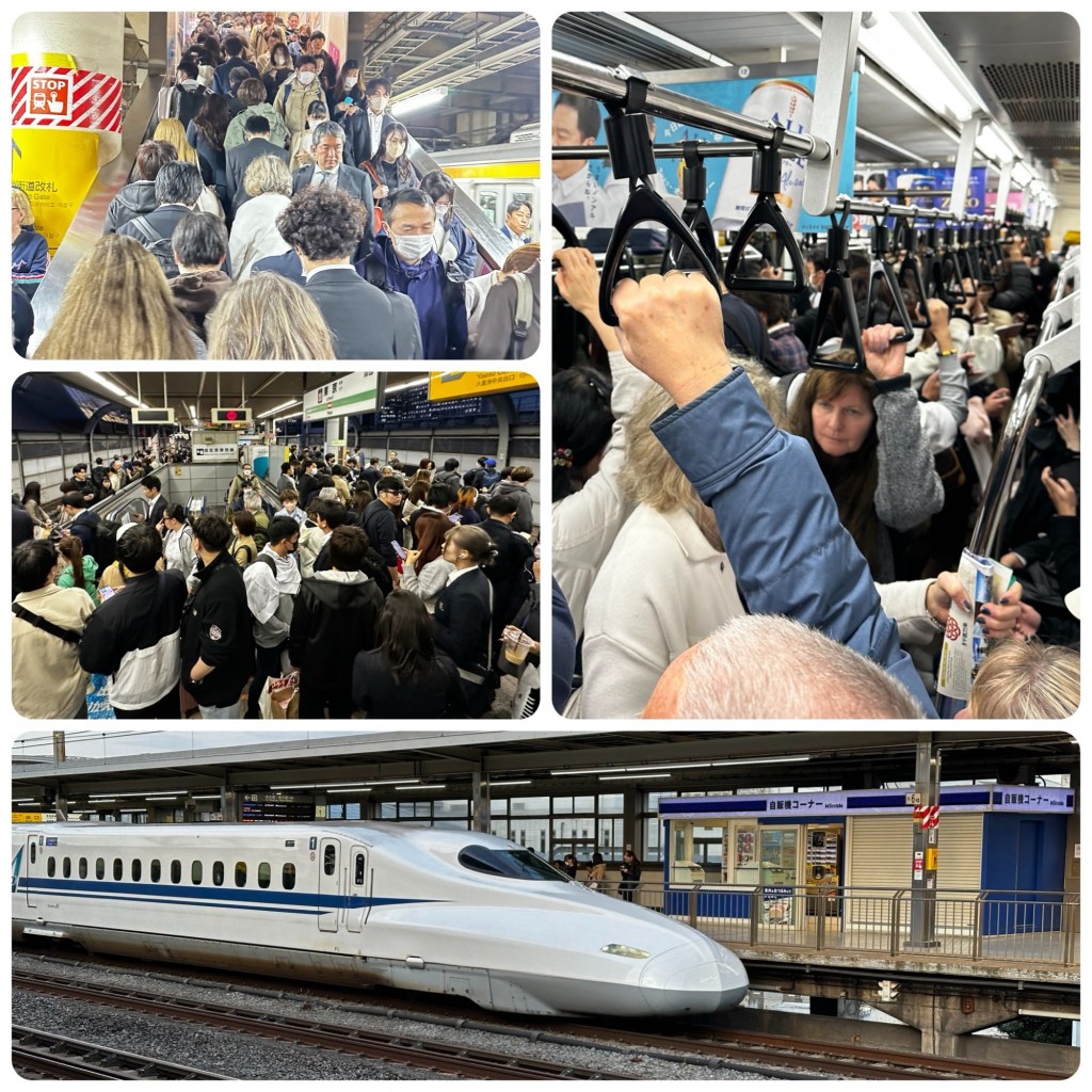 Back on the bus and we wind our way down the mountain on a narrow, steep road with beautiful views along the way. We are now heading into Hakone and onto Odawara Station where we will catch the Shinkansen (Bullet Train) back to Tokyo. While waiting at the station several Shinkansen pass through at an impressive speed. We are told to line up and when our train stops find the first seat available and sit, which we managed to do. Some didn’t find seats and had to stand for the duration of the trip. Arriving back into Tokyo Station we once again follow Harumi and her white flag as we negotiate our way to the platform we need to get us back to Shinjuku. (P:- I am forced to eat my words about comments I made earlier in the day of the Tour leaders little white Flag! As she was vertically challenged the white flag was all we could see of her in the mass of peak hour human traffic! I “have seen it on TV” before but experiencing the Tokyo rush hour in real life was a hell of an experience!). There are so many people here and many, many tracks and directions people are going. We board the train for the short 20 minute ride with two stops. At each stop more people board and the carriage gets crammed full of people. They just step in the door, turn around and push back until everyone fits in. Not much breathing space. As we step out at Shinjuku we just go with the flow. People moving towards exits or other platforms. So many people. Finally we get out of the station into fresh air again. The station is just one huge mass of moving people, personal space is non existent. What an experience. An another item off the bucket list.