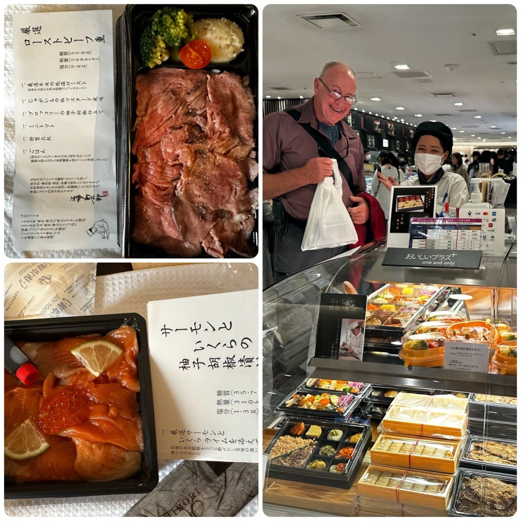 (P:-Today is Cruise day as we embark on a bit of a paddle around Japan and South Korea. Check in time for the Cruise ship was 1pm – 4pm. I asked for a late checkout from the Hotel with a particular goal in mind. Being involved with Agriculture I have often heard of the premium prices paid (and asked) for high quality food products in Japan. On our travels yesterday and the shops I had visited the prices were very little different to Tasmania. My Goal (and Judith’s but she was yet to know about it) was to search out a High End Department store food hall. Research led us to Isetan Department Store. We were outside when the store opened waited for a few dozen people to go in and we wandered straight into (as you do in any department store) a huge ground floor area of “wrinkle hiding” products – Think its called the Cosmetics area? As we were among the first customers there were about 30 or 40 beautiful Japanese women (Cosmeticians) bowing to us in traditional Japanese style. An interesting feeling and not sure if we felt a bit special or felt like hiding. A precious moment regardless!
