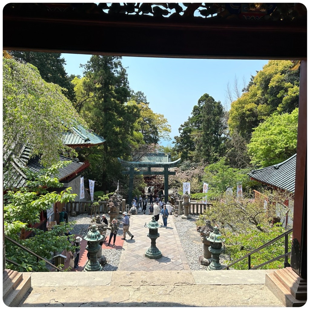 After a short stop here we reboard the bus and drive out to our lunch spot. An odd spot as there is no view, no gardens and on the side of the Highway. A big hotel with large dining room, obviously designed for tour bus lunches. Lunch looks good though and tastes even better. Not sure about the Japanese drumming performance they had as soon as we sat down. Just about did Philip’s head in. After lunch we climbed aboard the bus again and drove on to Lake Ashi where we board a small cruise/ferry that takes us across the lake to the Hakone Kamogatake Ropeway. The lake is formed in the crater of a volcano. The ropeway, cable car takes us up to a mountain top where we will supposedly have spectacular views over the area. On the ride up, Mt Fuji becomes visible and we were able to get a few photos before it clouds in again and the view disappears as we reach the top. From the cable car stop we walk up to the shrine about 750 metres away with fog/cloud swirling around us. Makes for some good photos of the shrine. Walking back down to the depot we can barely see 20 foot ahead of us so we head down again. Dropping down below the cloud Mt Fuji is still visible. Another bucket list item ticked off.