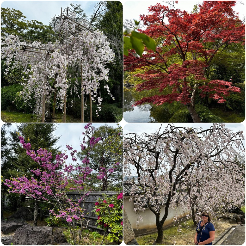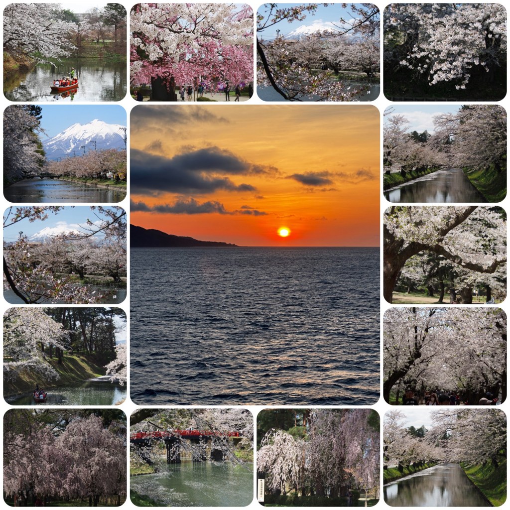 (P:-Any day is a great day that gets us out of the city and into rural and forested areas. Today was exceptional. A great rural drive viewing farmland and agro forestry (Cyprus and Cedar plantations) as well as the immaculately pruned Fuji Apple orchards and tractors busy in the cropping land mentioned previously. If there was ever a spring blossom overload it was today. The Cherry Blossoms in their prime overshadowed that there was another Castle in the area! I also never noticed a Shrine close up. The gardens of Japan are amazing! Did I mention the Foods of Japan are amazing also? As we sailed out of Aomori a beautiful sunset topped the day off as one to remember.)