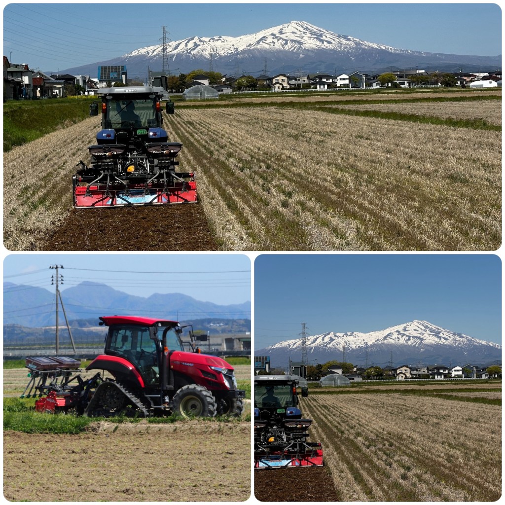 (P:-Would have been a very pleasant walk but the Taxi idea worked a treat and our driver in black suit white gloves and tie (as they all are) drove us out of town to an area of rice fields for us to view. Timed perfectly as it was the first day of rice planting for the season, Two tractors were planting seed in a one pass operation into last years stubble. Water was starting to flood the corner of the first paddy planted. All happening under the shadow of beautiful Mt Chokai. Great to see a bit of real Japan! Made me smile a lot more than Castles, Shrines and Temples!