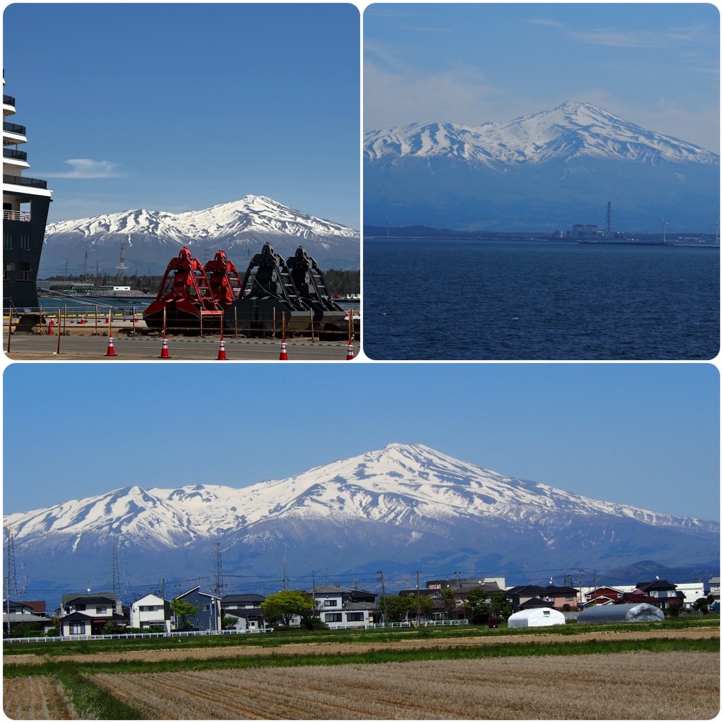 (P:- One of our team is usually up to see the sun rise, while the other, who will remain nameless likes to snooze a little longer. This morning as I head out on deck two imposing snow covered mountains dominate the clear dawn skyline. Mt Hakodate (1585m) and Mt Iwaki (1625m) a beautiful spring morning in Aomori)