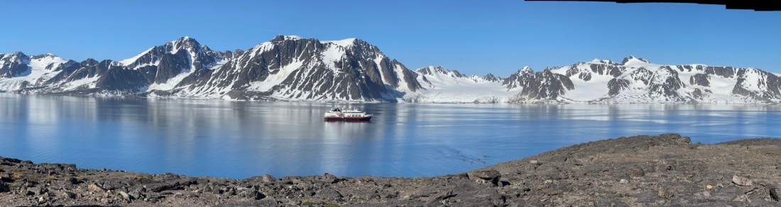 Today we have an early tender trip in Alicehamna to view a 1928 trappers hut and several whalers graves. In the hut was a piece of timber on the wall with a stamp with the name Albert Nobel. Albert Nobel was the founder of the Nobel Peace Prize. A short walk up hill following the line of red ants (fellow passengers in their Hurtigruten jackets), over snow in places, spotting arctic flowers taking every opportunity to bloom and Svalbard’s only tree, the Arctic Willow that grows to a huge height of 7 cm (2 3/4”). Again spectacular weather, 8 degrees, no wind and mind blowing views. Our expedition guide says he has never had an expedition prior to this one where the weather has been beautiful every day. How lucky are we.