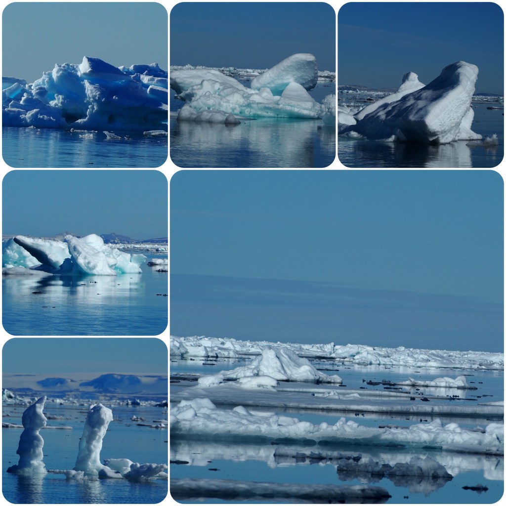 We cruise into Sjuoyane where we spend the next couple of hours doing small boat (tender) cruising. This spot is breathtakingly beautiful. Not a ripple on the water, ice floes everywhere, mountains and islands in the background and the sun is shining in a blue sky giving a warm glow to the snow and ice and making the water and ice bergs a tropical blue.