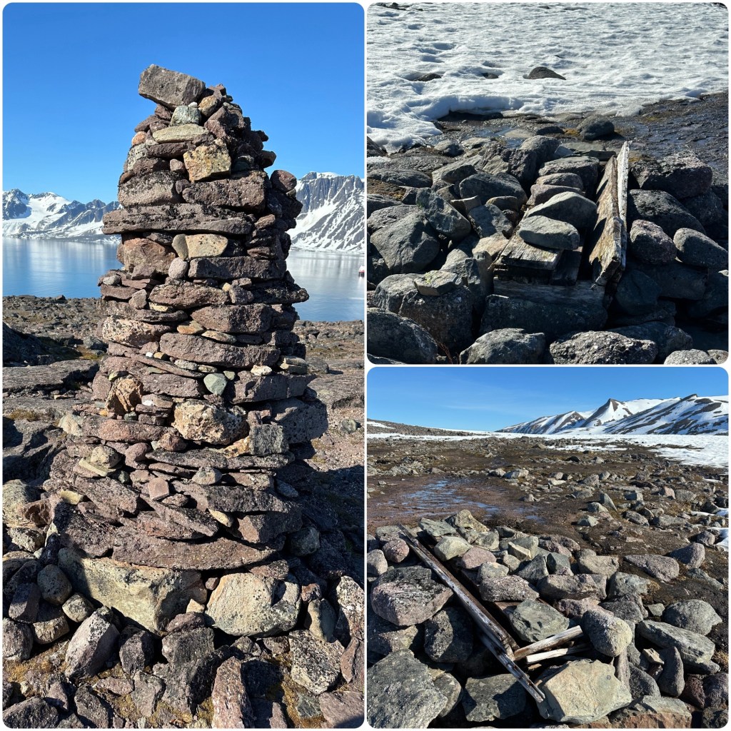 Todays first stop is at Chermsideoya for a walk along the beach and up the hill. There is “graffiti” here from many years ago. Left by Russian explorers and Nazi explorers who left a swastika marked with stones. The weather here is beautiful again. Water temperature is -1, air temperature is 2 degrees. Polar plunge is open again today and Ian is up for it again. He played walrus on an iceberg very quickly. A few more takers this morning for the swim. This landing site is in a very protected bay with mountains all around. The sun is out and the views spectacular again.