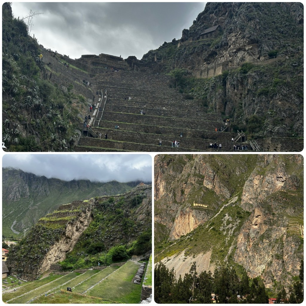 Ollyantaytambo is our next and final stop. This town sits at the northern end of the Sacred Valley and is believed to be the stronghold for the Inca leaders of the times. We enter the fortress and start to climb the many stairs to the temple area at the top, not an easy feat at this altitude and with a time limit to be back at our meeting point. Looking across the valley from the terraces we can see the granaries, where corn and grains were stored. These were built high on the hills with no doors and the windows low to the ground to take advantage of air ventilation. This is again an amazing place with so much to see.