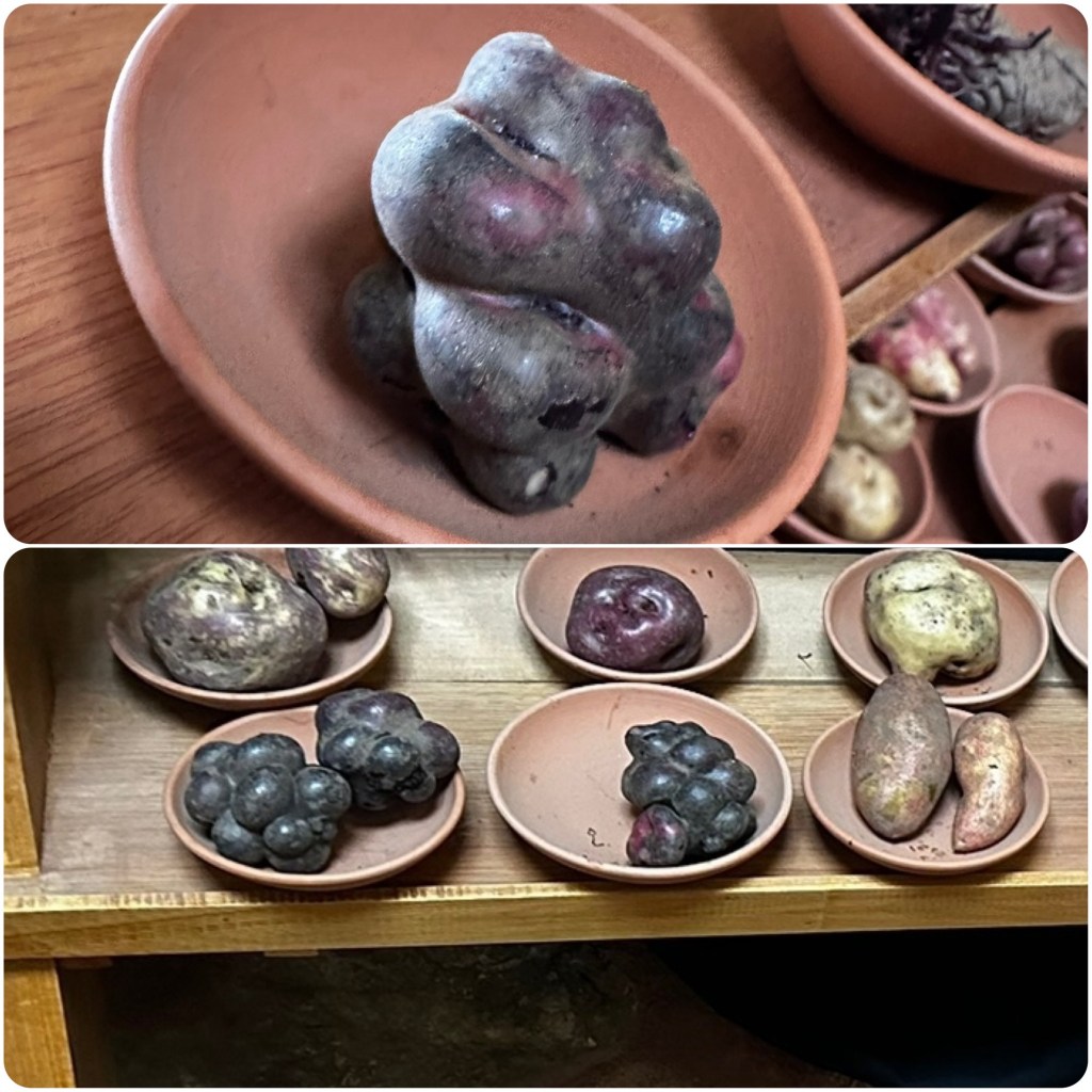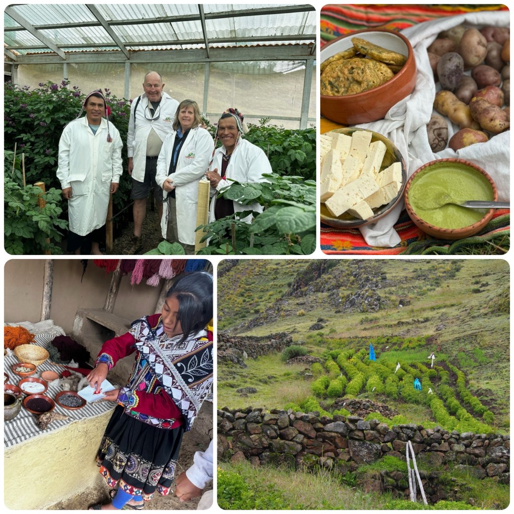 (P:- When we decided Peru was going to be visited I started researching and I knew in ancient times, the potato originated there. I also found out we were going to be within 40 klm of the Potato Park ( internationally sponsored) so proceeded to try and arrange a visit. When we were picked up this morning Ernesto’s first comment was “we have arranged an unusual and very special day for you. It is rare for private people to visit one of the most scenic, very private, valleys (13,000 ha) in the area. A most interesting day, local foods, the technical side of their aims is to protect and continue the life of some 1100 rare potato varieties, looking at propagation, growing and storing rooms wandering fields and (it felt like) hiking to the top of the Andes to see actual wild potatoes growing in their natural environment. After such a great day this Machu Picchu thing we are going to see tomorrow is going to have to be good to surpass today!)